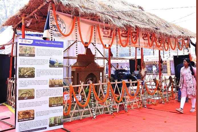 The District Level Farm Mechanization Mela at Kalipadia, Keonjhar, featured a dedicated “Shree Anna Abhiyan” millet stall, showcasing millet seeds